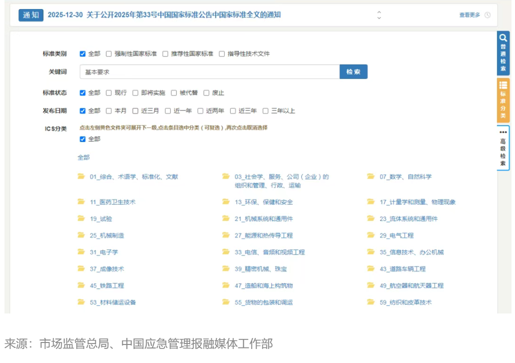 国家标准全文免费公开一年来可下载国家标准数量从1500多项增加到32000多项有效满足了企业和社会公众需求产生了积极的影响截至2025年12月31日国家标准全文公开系统全年浏览量达1亿多次全年在线阅读量和下载量超千次的国家标准达10000多项超万次的国家标准达800多项其中安全生产、危险化学品安全、电动自行车安全等方面标准在线阅读量和下载量持续居于高位如何利用国家标准全文公开系统(网址:https://openstd.samr.gov.cn/bzgk/gb/index)查询下载标准?以下三种方式↓↓↓