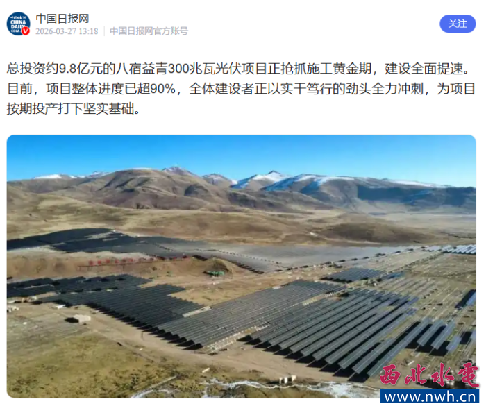 近日,中国日报、中国经济网、中国西藏网等主流媒体相继报道由西北勘测设计研究院有限公司勘测设计的西藏八宿益青300兆瓦光伏项目加快推进情况。项目建设进度已突破90%,正全力冲刺并网投产。该项目作为藏东南清洁能源基地示范工程,设计团队以科技之力破解高寒高海拔难题,为雪域大地注入澎湃绿色动能。