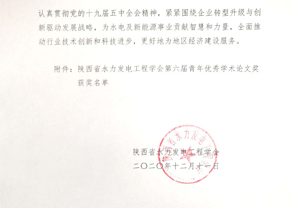 关于表彰第六届青年优秀学术论文的决定(陕学综〔2020〕第5号)